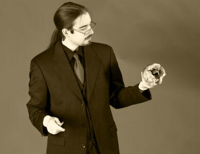 In some of his other lives he writes songs and plays the guitar for the Goth-Rock band beyond the void, the nightmusic combo The Darkness Within and his project Metatron.
